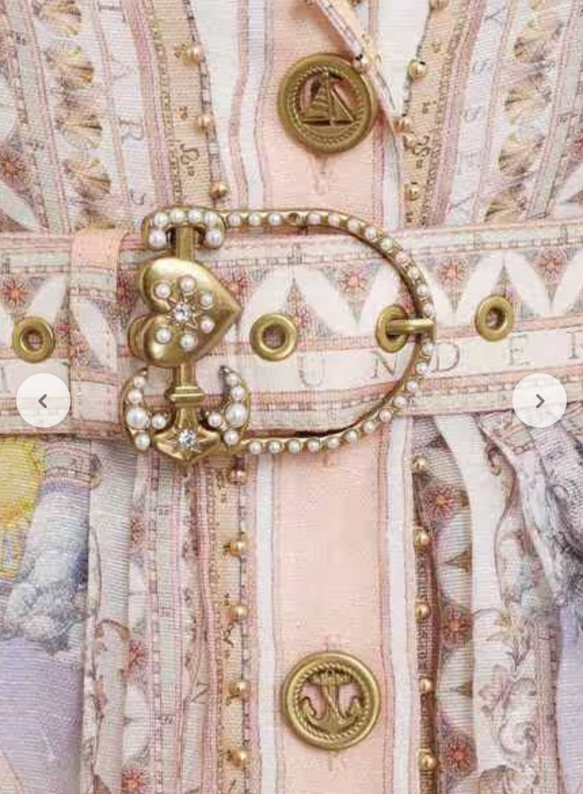 Tailored collar with front buttons. Detailed with gold beads. Decorated with lace at the hem.