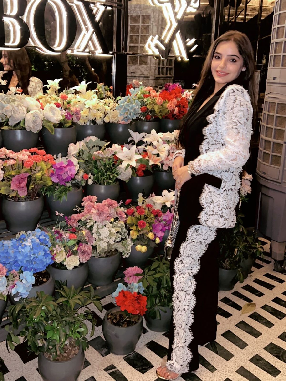 Get your hands on this Chic Black blazer set with white lace detailing