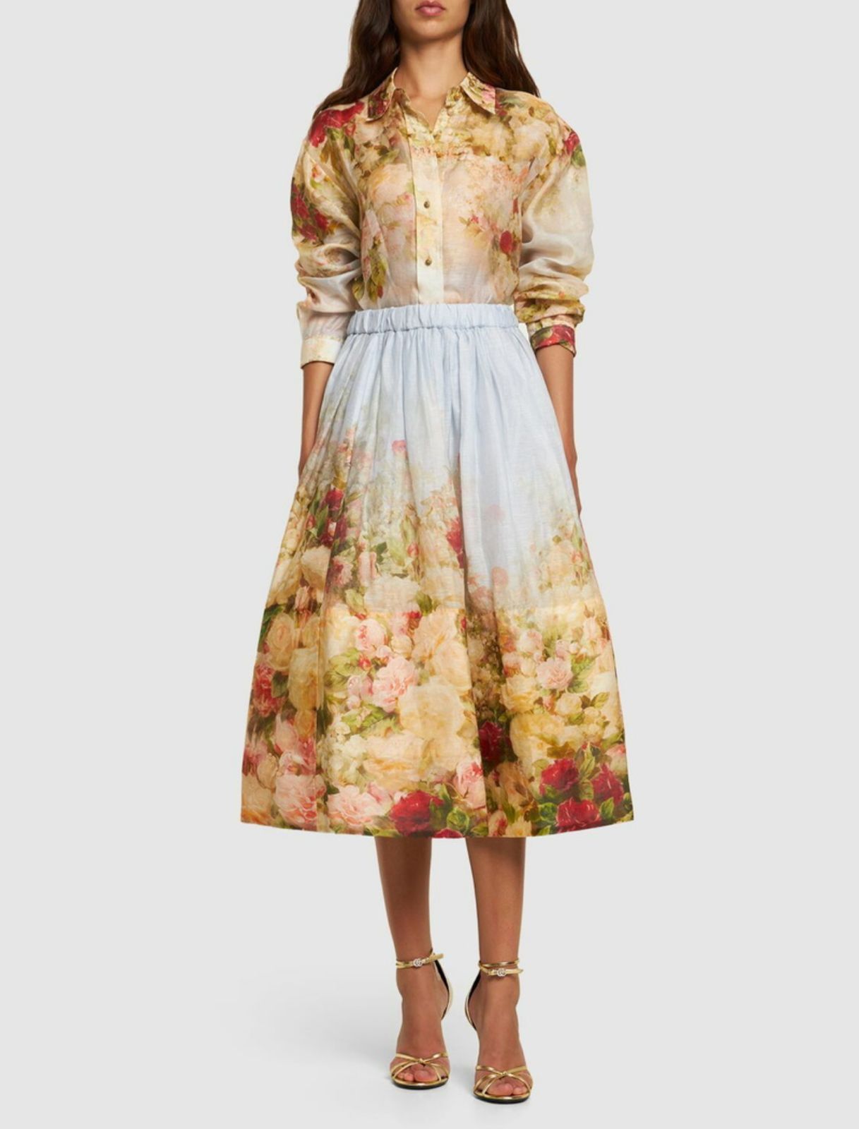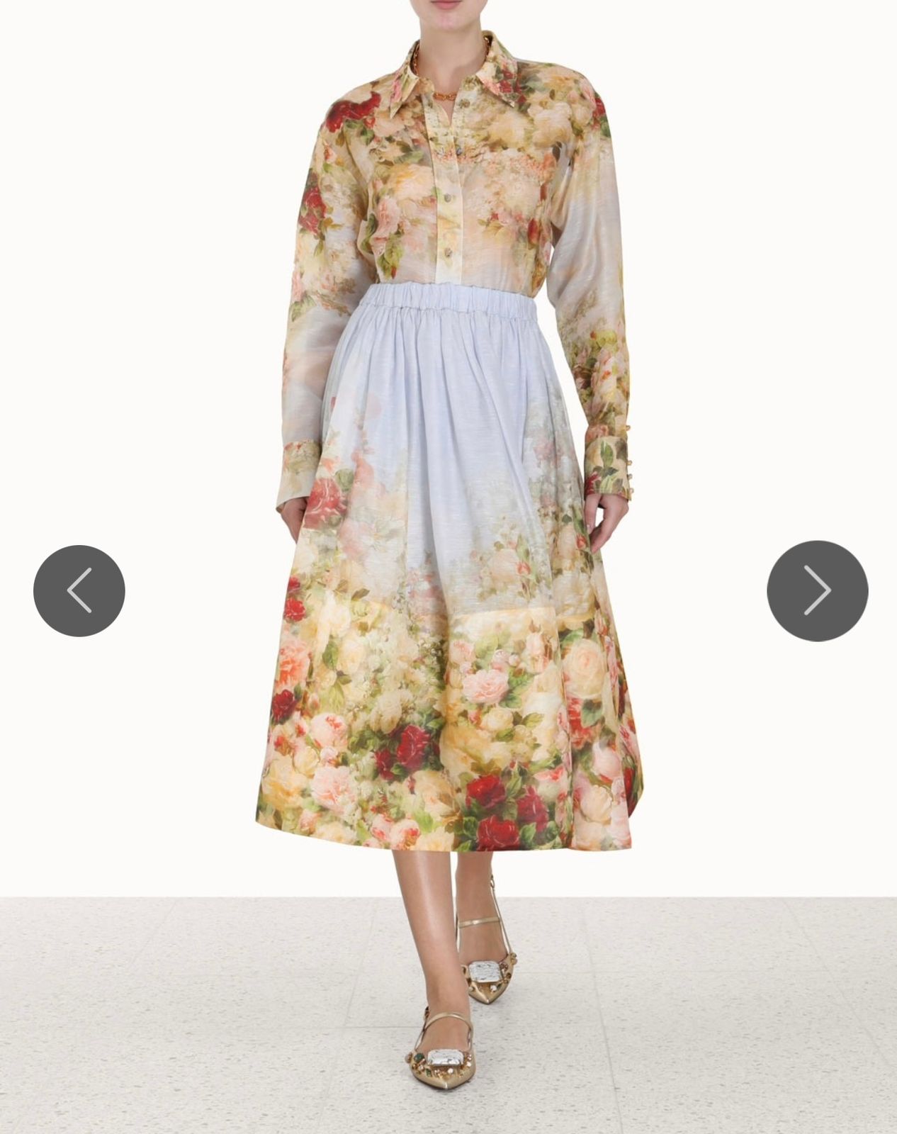 Set of collared shirt, and long maxi skirt.